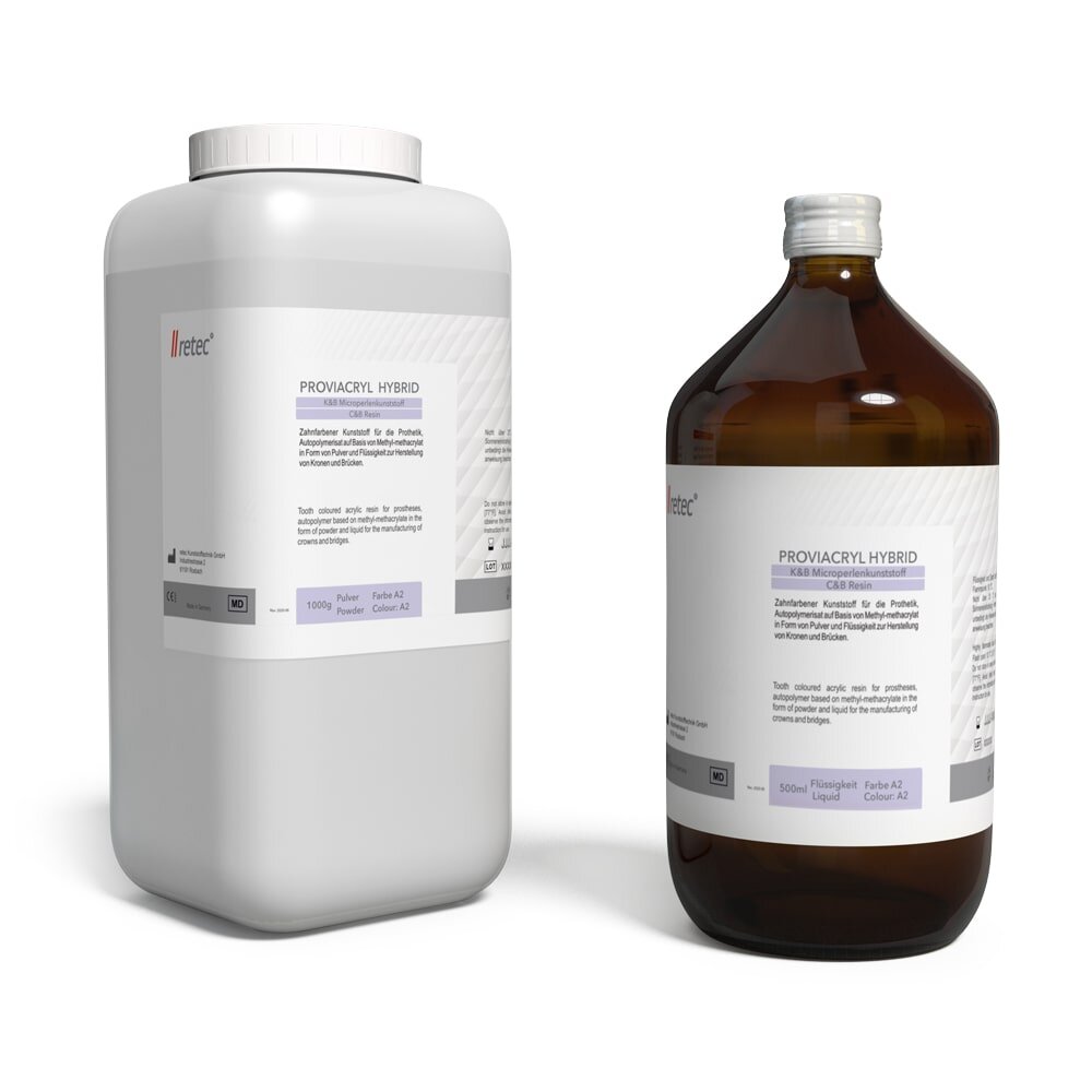 retec® PROVIACRYL ist ein Pulver/Flüssigkeits System zur indirekten, extraoralen Anfertigung von Kronen und Brücken sowie zur Hinterlegung bzw. Befestigung von Veneers an Metallgerüsten.
